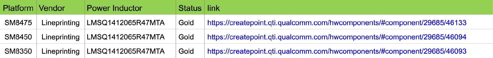 今日,公司(无锡蓝沛新材料科技股份有限公司,下文简称“无锡蓝沛”)从美国高通官方获悉,公司最新开发并成功量产的1412超小型一体成型功率电感LMSQ1412065R47MTA于SM8350、SM8450、SM8475旗舰平台获金牌认证通过,为国产首家。这是继LMS1412065R33M之后,公司又一款国产首家在高通高端平台获得认证通过的产品,也是对无锡蓝沛长期致力于高端材料与元器件国产化工作的肯定。